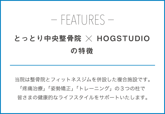 とっとり中央整骨院 × HOGSTUDIOは「治療」と「運動」の2つの方向から、地域の皆様の健康的なライフスタイルをサポートいたします。