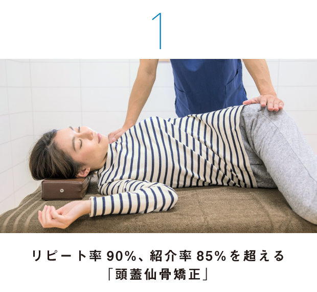 頭蓋仙骨矯正は、5万件を超える豊富な施術経験から編み出された当院独自の治療法で、一人ひとりのお身体の状態に合わせて骨格・関節・筋膜・筋肉を調整していく完全オーダーメイドの施術となります。
